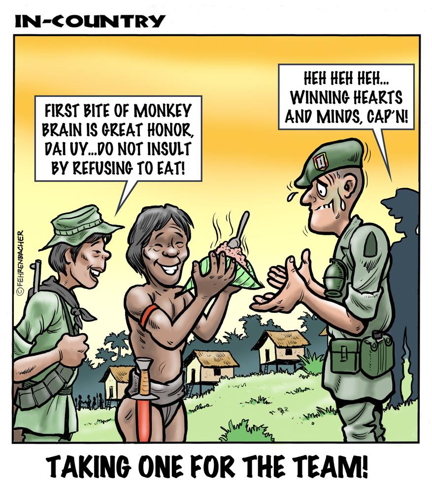 Phil enlisted in the Army in 1965 where he served for years in Vietnam. He became a graphic designer and has worked for the state of Oregon for 26 years. He retired in 2003 and started the Cartoon "In-Country". The cartoons reflect his experiences during his tour of duty in South Vietnam.