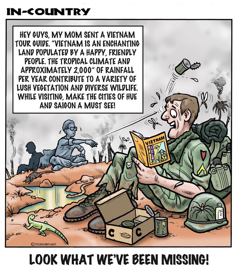 Phil enlisted in the Army in 1965 where he served for years in Vietnam. He became a graphic designer and has worked for the state of Oregon for 26 years. He retired in 2003 and started the Cartoon "In-Country". The cartoons reflect his experiences during his tour of duty in South Vietnam.