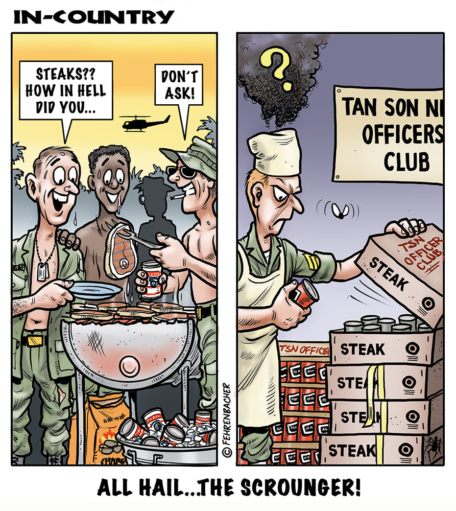 Phil enlisted in the Army in 1965 where he served for years in Vietnam. He became a graphic designer and has worked for the state of Oregon for 26 years. He retired in 2003 and started the Cartoon "In-Country". The cartoons reflect his experiences during his tour of duty in South Vietnam.